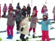 东北小学生滑雪场上体育课